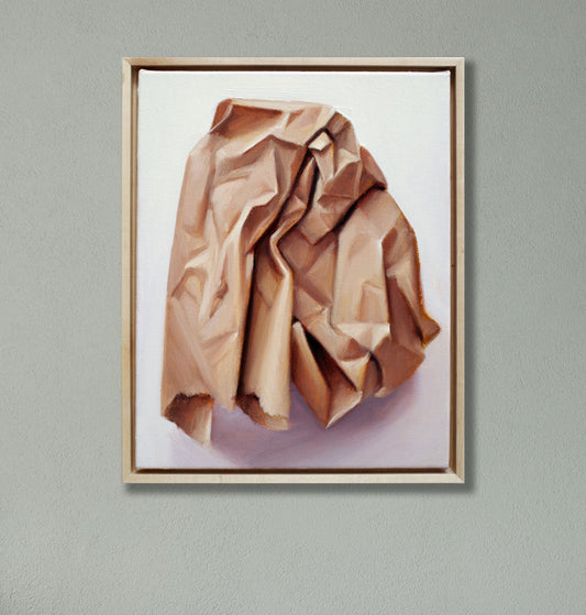 Crinkled Brown Paper Oil Painting – Original Framed Still Life 16x20