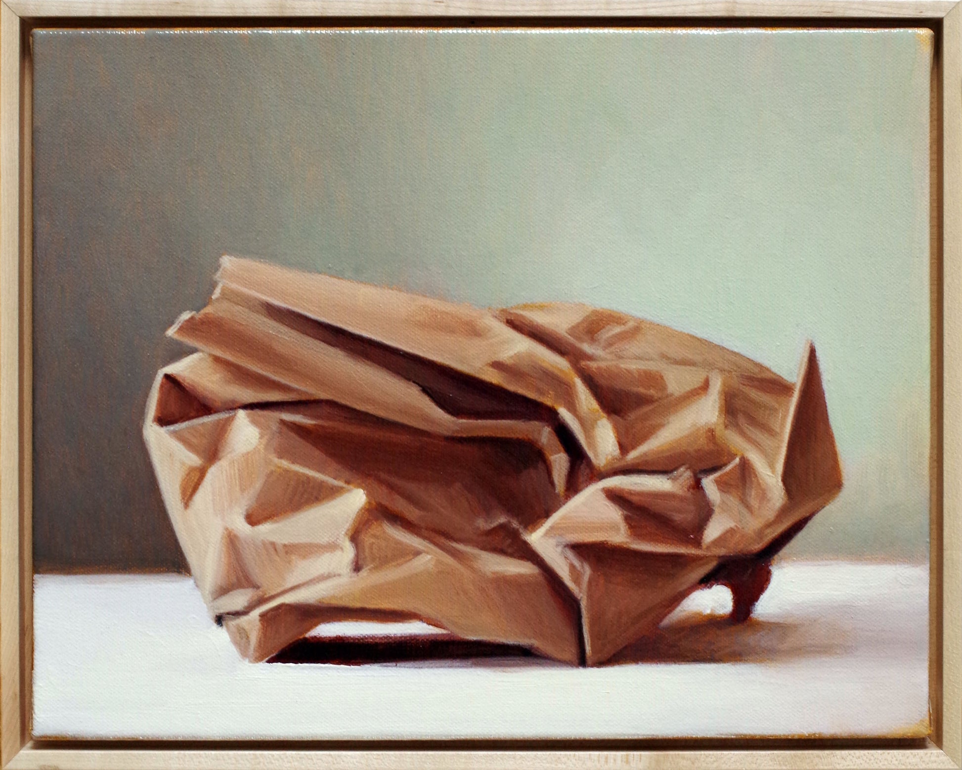 This original oil painting was made by observing crumpled brown paper from life. Through careful layering of oil glazes, I emphasized the subtle shifts in light revealing the folds. The work captures a contemplative moment where an everyday object becomes timeless.