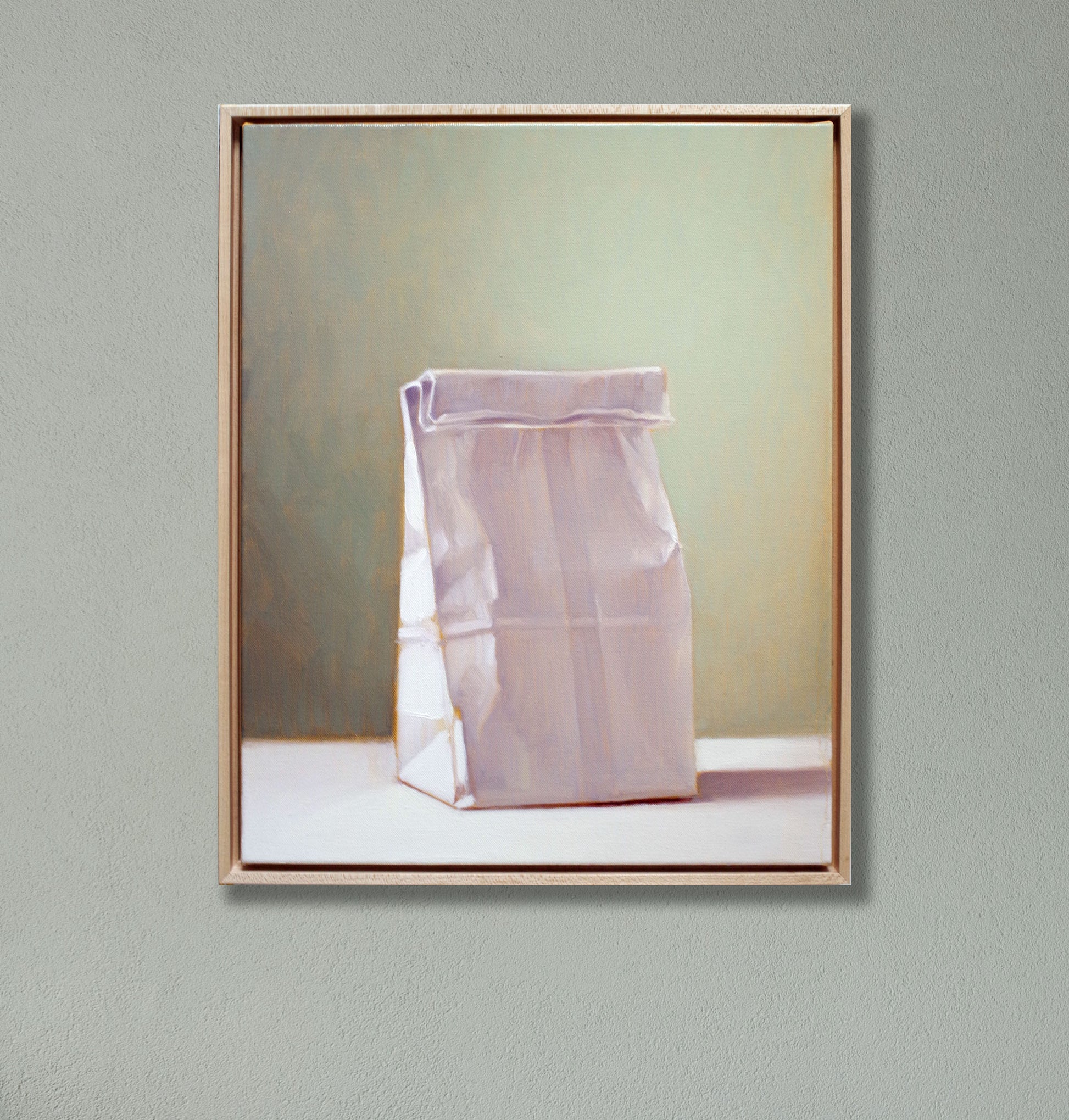 White Bakery Bag Oil Painting – Original Framed Still Life 16x20
